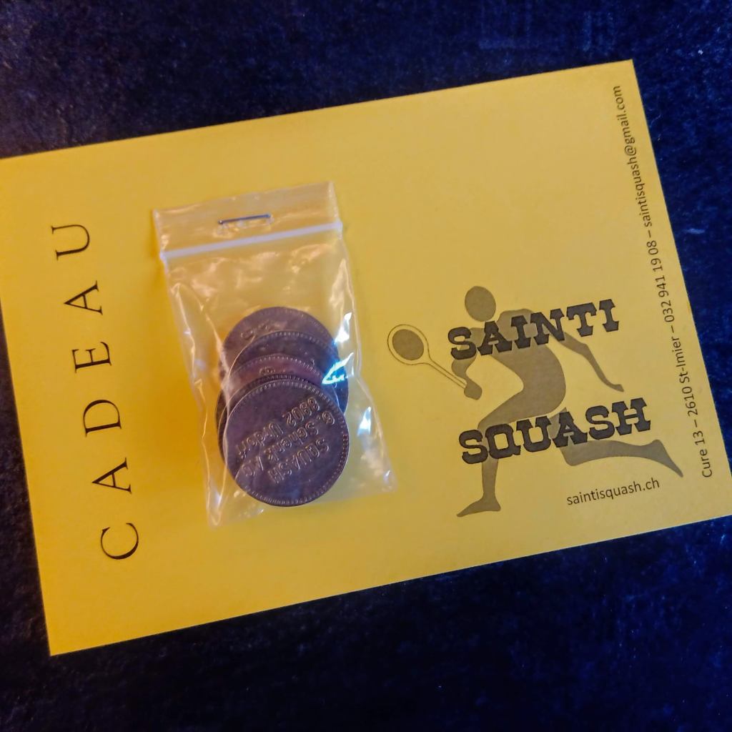1 jeton = 20.- / 11 jetons = 200.- / Contactez-nous au 032 941 19 08 ou par mail saintisquash@gmail.com